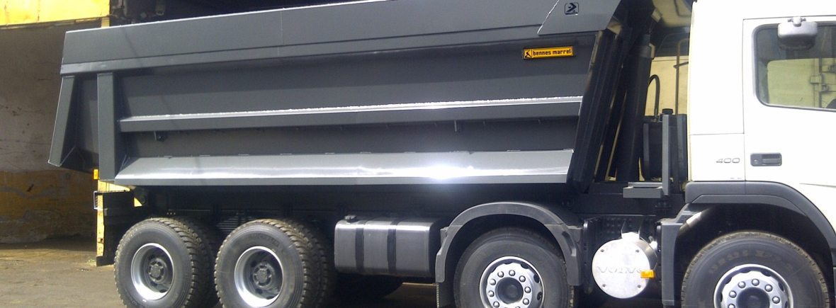 La petite soeur : la benne MD pour 6M3 avec basculement à l’aide de vérins Marrel.